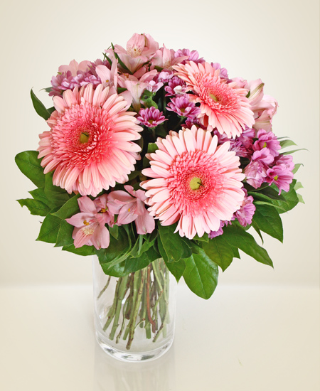 bouquet sui toni del rosa con fiori di stagione disponibili in negozio